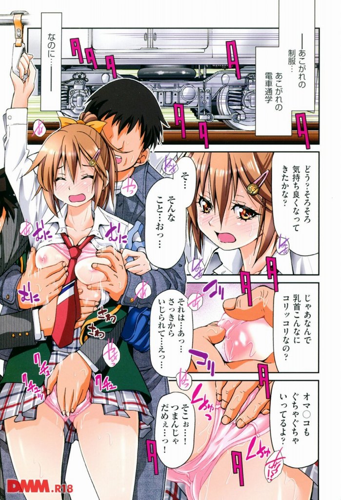 【エロ漫画】鉄子としてダイヤを乱しちゃいけないという一心で痴漢たちの横暴を許しちゃうJKの話ww