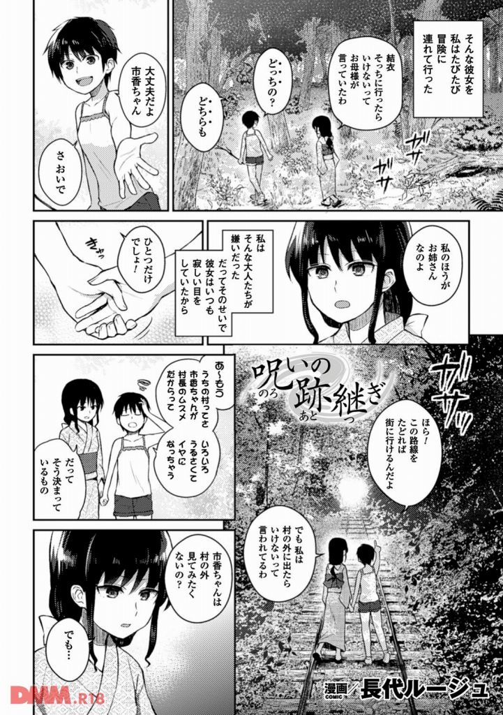 閉鎖的な地元の村から飛び出し、憧れの都会で社会人生活を送る結衣のもとへ一通の手紙が届く。一つ上の幼なじみ市香から知らされた結婚の報せにすぐに帰省した結衣。忘れてしまった幼い日の約束と、服を脱がされ指で果てながら知った彼女と村を縛りつける千年の呪いとは──。ロマンチックノスタルジーな二人の逃避行に新しい命が芽生える。