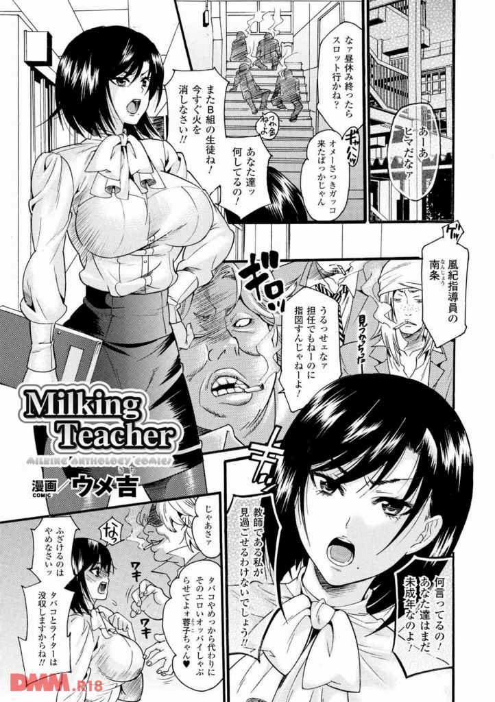 学園の風紀の乱れを許さない堅物巨乳教師・南雲。不良達の素行不良を注意した彼女だが、マッドな物理教師と手を組んだ彼らに輪姦凌辱されてしまう。母乳促進剤をうたれ、搾乳されて母乳を噴き出しながら強制されるパイズリ・フェラチオ奉仕。アナルにまで中出しされ、女教師は高みに昇りつめてゆく……。