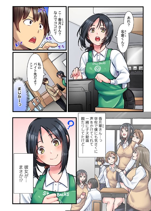 エッチができる裏コール!?店裏で喘ぎ声を響かせて…カフェ店員のホットなカラダ、味わい尽くします…!アレンジ注文が有名なカフェで、女子店員とエッチできる裏コールがあるという噂。その真相を確かめるべく俺は店に向かった。すると出てきた店員は、クラスメイトの香月さん!?しかも注文すると、赤面した彼女に「裏に来て…」と誘われて…噂は本当だったんだ!憧れの香月さんを前に我慢できず、キスと愛撫で責め立てると、ビクビクと敏感に悶えてエロ過ぎる…っ!しかし、彼女の恥じらいは、まるで裏コールを知らないかのようで…?