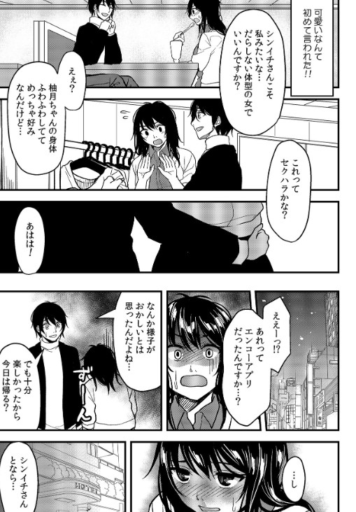 「お腹揉んだらすっごい締まったよ…恥しいトコ触られて気持ちよくなっちゃんだ?」男子から「たぬきの置物」と言われる程のぽっちゃり女子・朝倉柚月。ステキなカレシを探す為にクラスメイトからすすめられたデートアプリにアクセスし、初めて会う男性・シンイチと、デートを楽しむ…。が、実はデートアプリはエッチ系のアプリという事がわかり、その気になったシンイチにホテルに誘われてしまうのだが、柚月は快諾して…