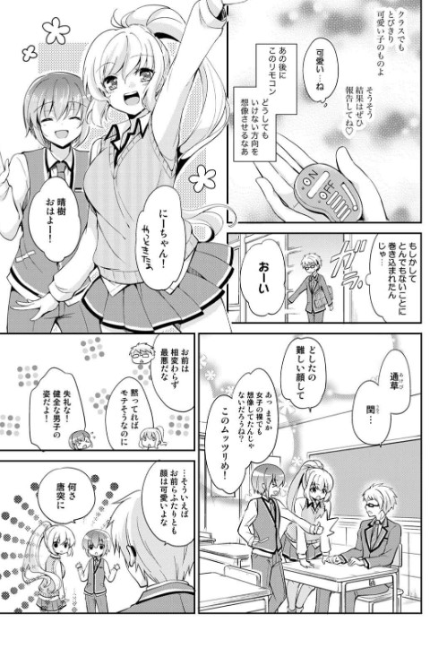 主人公・水谷晴樹(みずたに・はるき)は、とあるきっかけで謎の‘スイッチ’を女教師から託される。昼休み、晴樹がそのスイッチを入れると、同じクラスの美少女、櫻木文香(さくらぎ・ふみか)に異変が。顔が紅潮し、何かを我慢するように教室を出た文香を呼び止めた晴樹は、無人の教室へ文香を誘い、スイッチのことを話す。文香が身に着けていたものを見せてもらうと、それはロー●ー。使い方を知らない文香と、スイッチを託された僕。つまり、僕は彼女にこれを使えということか? 晴樹はロー●ーを文香のアソコに押し当て、刺激に悶える文香を見て「もっと刺激を与えたいな」と考える。そして晴樹はついに、自らのペ●スを文香に挿入し――。