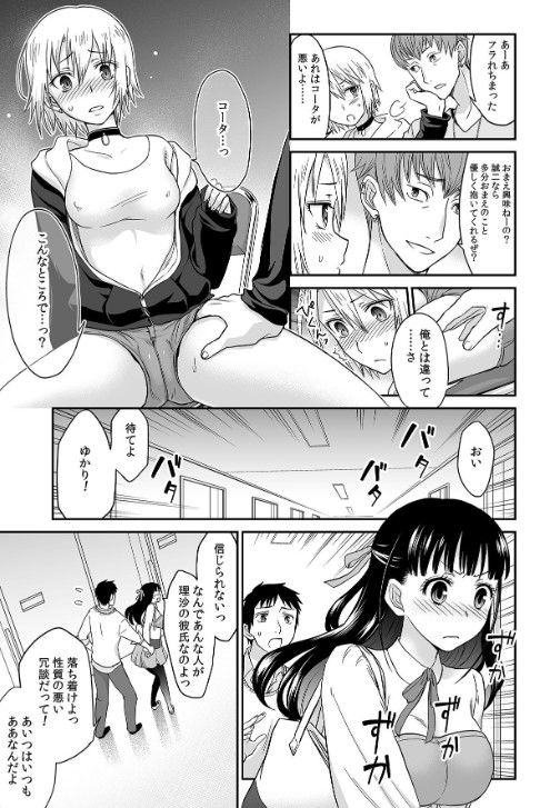 「ちがう…早く突っ込んで揺さぶって欲しいのに…!」深窓の令嬢・ゆかりは、優しくて思いやりのある彼氏・誠二との順調な付き合いを続けている。とある日の事。忘れ物をした誠二がゆかりと教室に戻ると、誠二の友人コータが彼女の理沙と激しいセックスをしている最中だった…。すぐにその場を離れようとするゆかりだったが、その激しいセックスを見て、思いもよらない性欲が噴出。教室の前で尻を突き出し、誠二にセックスをせがんでしまう…。自分でも気づかなかった性欲に戸惑いながらも激しくコータのセックスに惹かれるゆかりだったが…