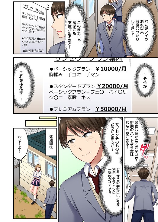 「スタンダードプランは胸揉み、手マ〇もOKだったよな」ガリ勉野郎が…がっつくだけと思ったら案外上手い!?こんなはずじゃなかったのに…胸を丹念に揉み込まれて、敏感な入口をにゅくにゅくされたらダメ、イッちゃ…!!――ここは全国初のサブセク試験校。サブセクは若者の恋愛離れ・SEX離れに歯止めをかけるためのシステムで、定額プランに加入することで学内の生徒にHし放題になる。俺はこんなシステムに興味はない!成績TOPの男子生徒・千尋は無関心を装っているが、そんな態度が気に入らないとヤンキー女子・夏希に目を付けられてしまう。いびりの日々で勉学への支障を感じた千尋は、最後の手段としてサブセクに手を出して…!?