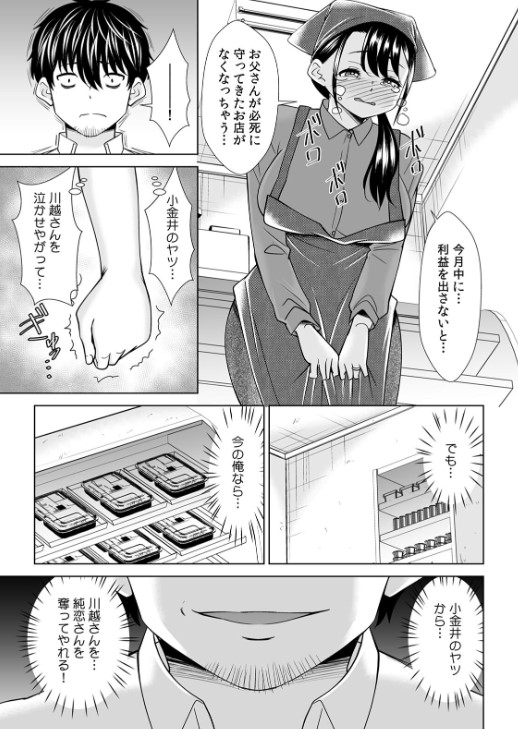 「私には夫がいるから…大塚君…やめて…」裸エプロンになった川越さんが、顔を赤くしながらそう言う。しかし、言葉とは裏腹にアソコはくちゅくちゅと湿った音を立てていた。「ホラ、この音! 感じてるんでしょ!? 川越さんがこんなやらしい女だったなんて知らなかったよ!」――仕事をクビになり地元に戻った俺は、昔好きだった川越さんと再会する。でも、彼女は●校の頃に俺をいじめていたクズと結婚していた…。失意のまま、俺は彼女が働くお店で弁当を買うが、その中には虫が…!「川越さんまで俺をバカにするの!?」誤解だと彼女は謝るが、俺の怒りは収まらない。俺は「何でもするなら…脱いで見せてよ」と思わず口にしてしまい…。