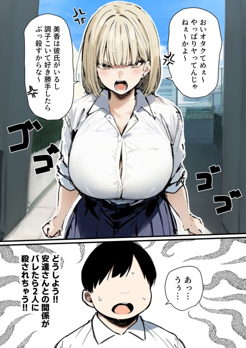 オタクと美香がオタクの家でセックスしている音を聞いてしまった愛理。 愛理はどうしてそんなことをしているのか、オタクに直接問いただそうと決意する。 オタクにその事実を確認しているところを美香に発見され‥‥