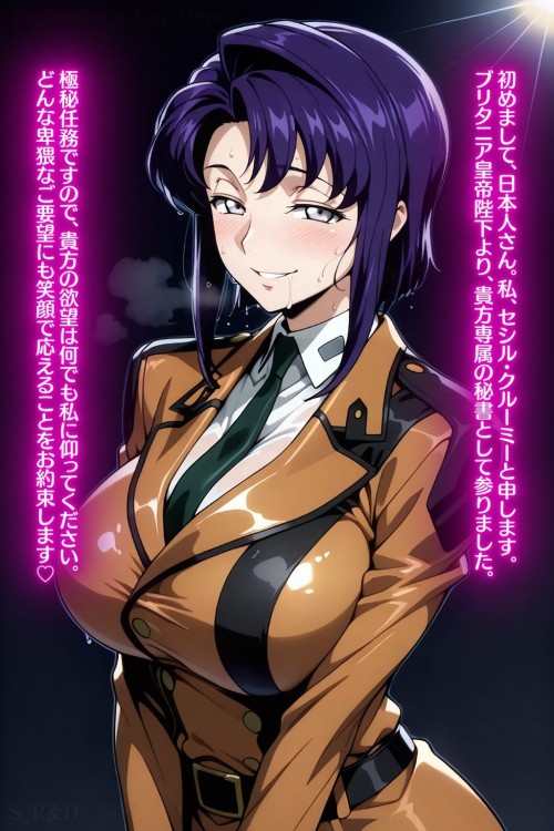 ブリ〇ニア帝国皇帝の密命を受けた美貌の技術者、セ〇ル・クルーミーは、とある日本人男性──’あなた’の専属性処理役として派遣されることとなった。 あなたは初対面にもかかわらず、ブリ〇ニア女性特有のスタイル抜群な肢体と成熟した大人の色香に心を奪われ、即座に卑猥な欲望を膨らませてしまう。 セ〇ルは露骨な視線を内心嫌悪しつつも、その感情を完璧な微笑みで覆い隠し、淫靡な奉仕を始めるのだった。 やがて、互いの臭いを濃厚に絡ませる倒錯的なフェチプレイや、濃厚精液の香りに支配される変態的な快楽に堕ちていく二人。 皇帝の命令と自身の理性の狭間で揺れ動きながらも、セ〇ルはあなたの異常なほど淫らな性欲に魅了され、徐々に抗いがたい深い悦びへと溺れてゆく――。