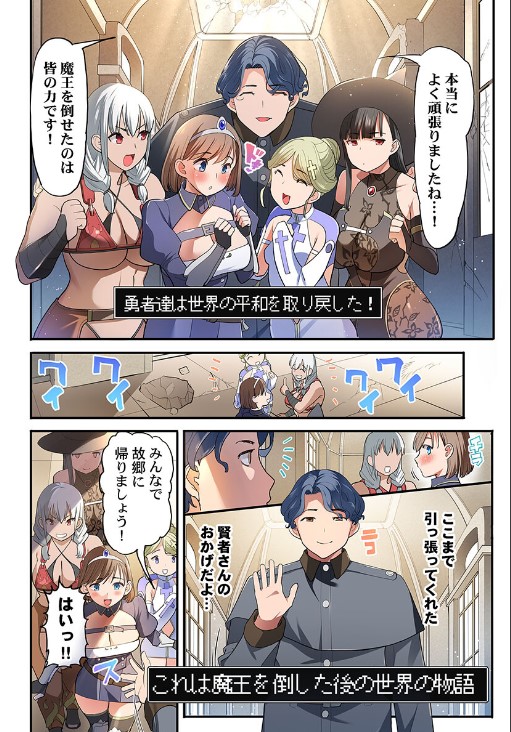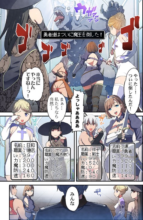 ゆうしゃはまおうをたおした!…そのご、せかいはゆうしゃを『オナホ』にして、しあわせにくらしましたとさwめでたしめでたし。――勇者も戦士も魔法使いも僧侶も、みんなみんな戦いが終わればただの女の子!弱いくせにまだ勇者のつもりでいて草w魔王がいない世界の勇者パーティーなんて利用価値ないんだから、みんなの処理係になるしかないでしょ〜?今だから言うけど、この世界の男全員、勇者パーティーのことエロい目で見てました、すみません!wさぁて魔王を倒したお礼に勇者さまをくちゅくちゅくちゅ気持ち良くさせてあげますか!