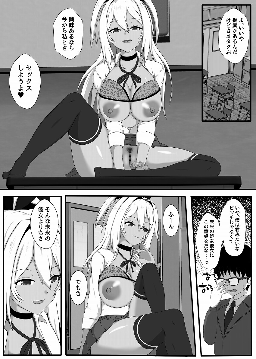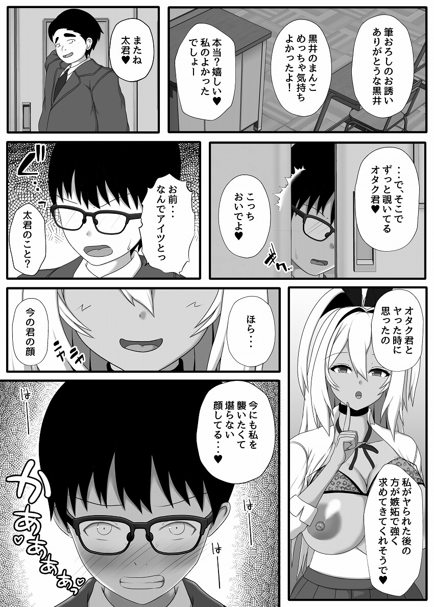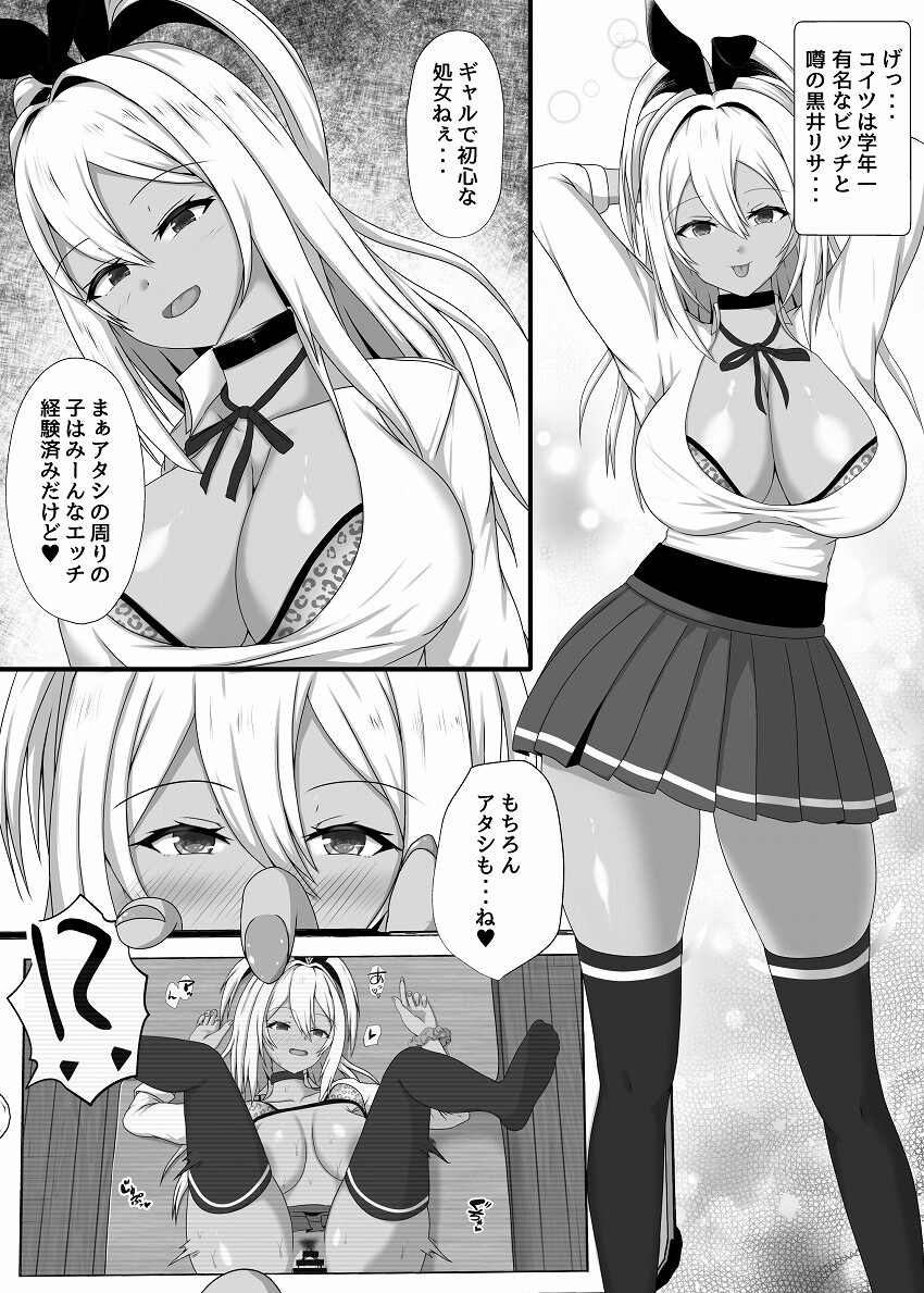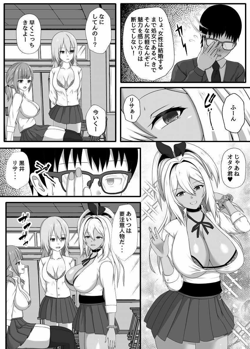 教室で友人の太と処女ヒロインが最高だとオタク話をしていたところに 学年一ビッチと噂の黒井リサに話を聞かれてしまい 「あたしのが可愛いくない?」とハメ撮りを見せつけてきた そんなビッチに動揺したが放課後の帰り、教室でセックスをしている黒井リサを目撃してしまう 初めて見る生の性行為に思わず覗いてしまい、そのことがバレてしまう 脅されるかと思ったが興味があるならセックスしない?と誘われてしまう 事後の黒井リサのエロすぎる誘惑に抗えず、僕はそのエロすぎるビッチの身体に夢中になっていき・・・ その後も僕は何度も嫉妬心を煽られ、ムキになった僕は黒井リサの膣内を僕の精液で掻き出して、絶対に孕ませてやろうと・・・・・