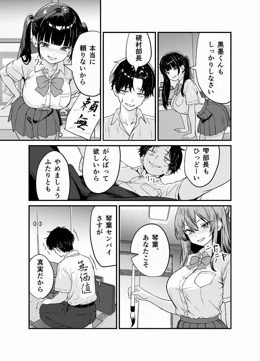 書道部の片隅で唯一の男性部員、黒墨(くろずみ)は笑われていた。