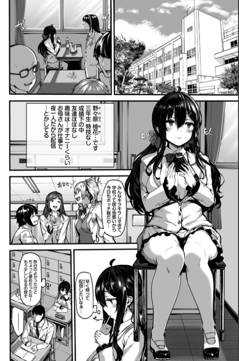 学校では地味な野々原柚花の秘密…それはオナニー配信…。顔を隠し、玩具でイキまくる充実オナライフは、ある日陰キャ男・比企の手によって崩壊する。身バレをネタに脅され、彼の前でするオナニー撮影…さらにはそのまま理性トロけるガン突きセックスでアヘ顔アクメまで晒してしまう! 羞恥心と快楽を教え込まれて以降、比企の性処理に使われる毎日が始まっていく…。