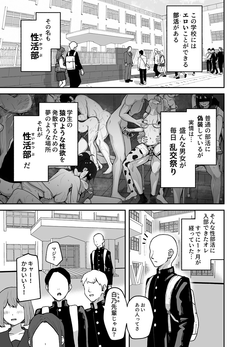 この学園にはドスケベ女子が集まる「秘密の部活」がある。 運よく入部できたオレは、朝や休み時間、暇な時に1発ヤらせてもらう、最高の日々を送っていた。 しかし…調子に乗って、規則を破ったオレは先輩たちから愛のこもった「おしおき」を受けることに…。射精後も執拗にしごかれ、潮吹きが止まらないっ!! チンポが壊れるまで遊ばれたオレは気絶してしまう…。 目を覚ますと… そこには…幼馴染で初恋の伊ノ原さんが… ドスケベ衣装で、オレの前に立っていた… これは童貞と処女だった新入生が、ヤリチン、ヤリマンに 変ってゆく物語…