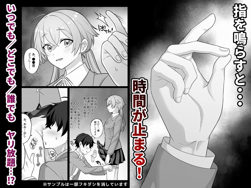 よく分からないけど、指を鳴らすと時間を止められるようになっていた。 これは女を●すしかない。手っ取り早くその辺の女とヤろうかと思ったが我慢した。 初めては慎重に選びたい。この学園は美女が多くて迷ったけど、やっぱ同級生からだな! それでその後は、先輩、後輩、教師……時間は無限にあっても忙しくなりそうだ!!