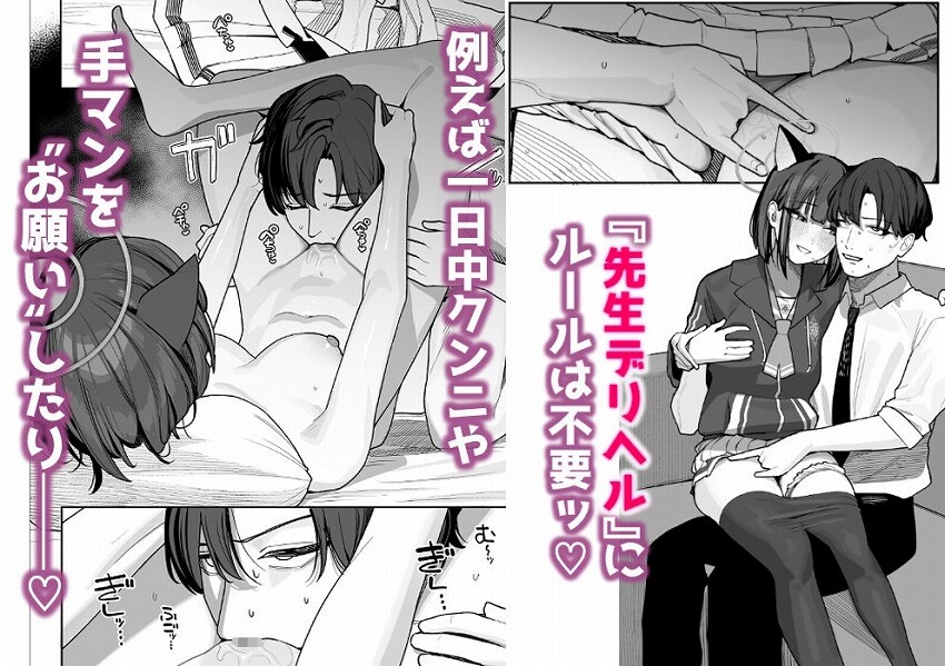 発情期に突入したカズサは今日も先生のことを考えながらムラムラむかむかオナニー三昧。けれどとうとう我慢の限界を迎えた彼女は連邦生徒会が新たに提供を始めた性的サービスを利用することに。 そのサービスの名は『先生デリヘル』。名前のとおり先生を指名できる夢のようなデリバリーヘルスの魅力に、カズサはずぷずぷと嵌まっていく…。
