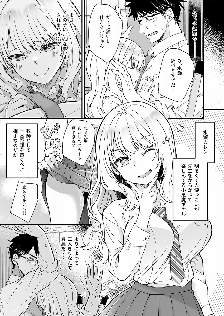 「声を出したら、すべてが終わる。」 放課後の校舎。 若手教師・直哉は、距離感が近すぎるギャル気質の水瀬カレンに導かれるまま、 人の気配が残る教室の掃除用具入れに閉じ込められてしまう。 外から聞こえる生徒の話し声。 中は、逃げ場ゼロの密着距離。 カレンの柔らかい胸を押し付けられ、股間をまさぐられる 「落ち着け」「理性を保て!」 頭ではそう繰り返すのに、身体は正直に反応してしまう バレたら終わりだと分かっているのに 背徳は、快楽よりも中毒性が高い――らしい。 翻弄する小悪魔と、理性が削られていく‘先生’ ――声出したら、終わりだよ?先生。 見つかったら人生終了。 掃除用具入れという密室で始まる、 静かで危険な背徳ラブエロコメディ。